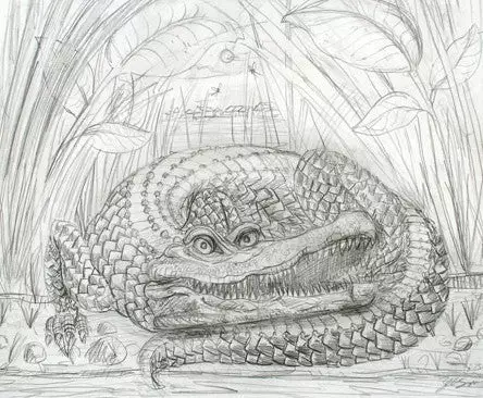 This is the original drawing by Zeb Love 1/1 for his Enormous Crocodile print. One of a kind, hand drawn!