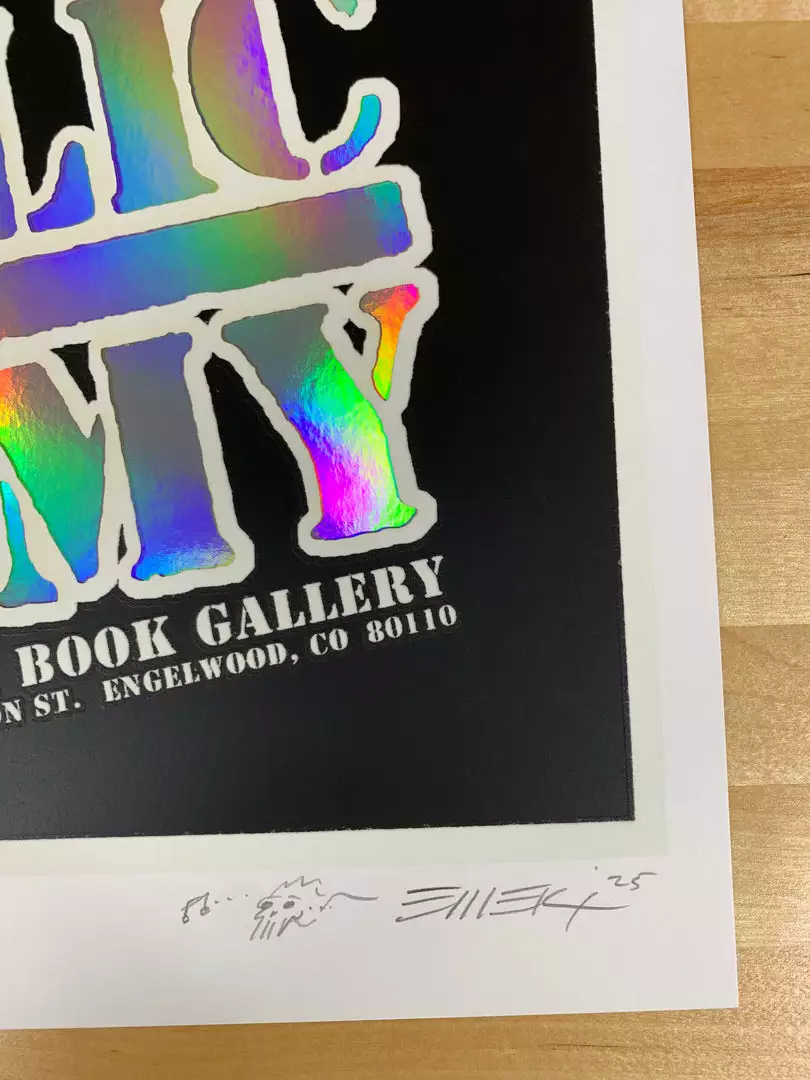 Type: Two piece print. Limited edition laser cut screen printed poster and a holographic foil screen printed poster. Â