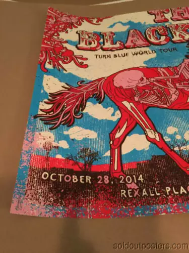 Black Keys poster by Gregg Gordon for their show at the Rexall Place in Edmonton, AB on 10/28/2014. This poster measures 18×24 which makes for easy framing. This is the ARTIST edition which is hand signed and numbered in an edition of only 225 by Gordon.