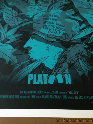 Mondo drops another great print, this one is by Johnny Dombrowski for Platoon. This poster measures 24×36 for easy framing. It’s hand numbered in a very low edition of 125. Don’t pass this one up!