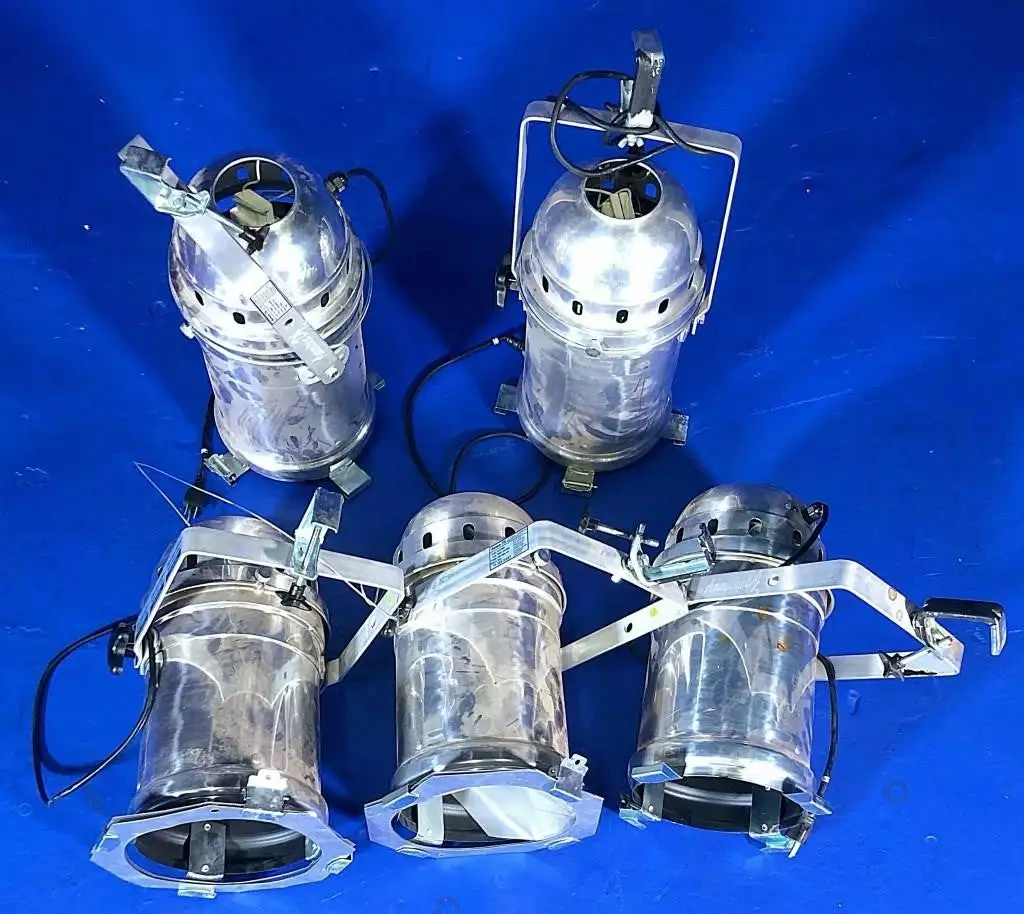 Stage lights from the famous Third Man Records “The Blue Room” music venue. This is a set of five (5) American DJ Par 64 Combo. Lights have been tested to be working but sold as-is.